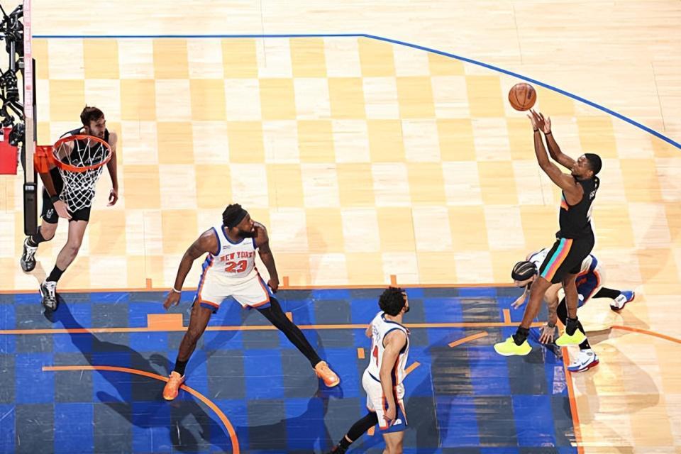 本场比赛中,马刺的先发控卫达隆-福克斯(De'Aaron Fox)的表现实在是令人大跌眼镜。福克斯全场出场31分12秒,投篮10中3,三分线外6中1,仅得到了7分3篮板6助攻的惨淡数据,还有2次失误和2次犯规,正负值也是低到了辣眼睛的-14。福克斯在进攻端效率不佳,他的得分能力和投射能力都没有办法发挥出来,他也没有展现出太强的传球能力和组织能力,他也是浪费了不少机会。最关键的是,福克斯在防守端简直是被杰伦-布伦森(Jalen Brunson)各种打爆,他在防守端的表现同样是惨不忍睹的水平。总体来看,福克斯在攻防两端的表现都是灾难级别的,完全没有展现出一名顶薪球员应有的水准,严重拖了球队的后腿。但凡他的表现稍微好一些,马刺都不会输那么惨。